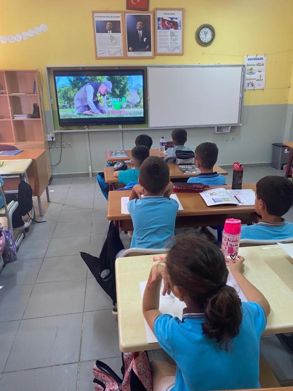 Öğrencilerimizin yaz ayları boyunca yaşanan yangın felaketlerinde küle dönen ağaçların yerine ağaç dikmeleri ve ağacın varlığının insan yaşamına etkileri konusunda bilinçlendirilmelerini sağlayan Bakanlığımız tarafından hazırlanan kısa filmler , keyifle ve merakla izlendi.